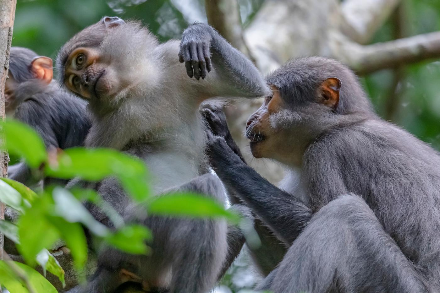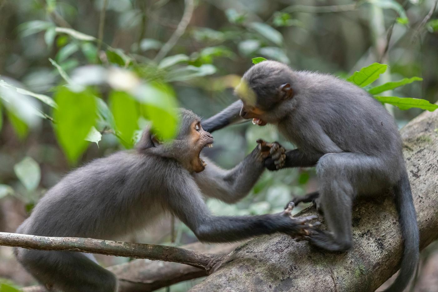 Ces mangabeys sont des espèces magnifiques et habituées à la présence humaine.